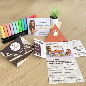 Fulletó desplegable de serveis per a Fusiona Penedès, solucions immobiliàries